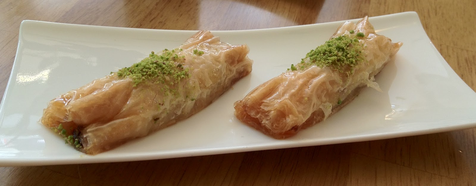 Eu que sou vidrada em baklavas e afins, logo topei o convite da minha amiga. O cardápio já vem com a fotinho dos docinhos, para você já ir ficando com água na boca. Escolhemos uma variedade de docinhos e dividimos (errr, ops, brigamos) pelas porções... Gente, tudo pelo blog... Sem a menor sombra de dúvidas, foram as melhores Baklavas que eu já comi! Estava tudo bem fresquinho e a massa estava bem macia e molhadinha, mas sem perder uma leve crocância. A minha favorita foi essa primeira!